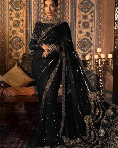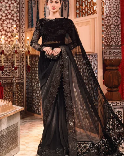 Maria. B. Bridal Saree – BLACK (FX-850)