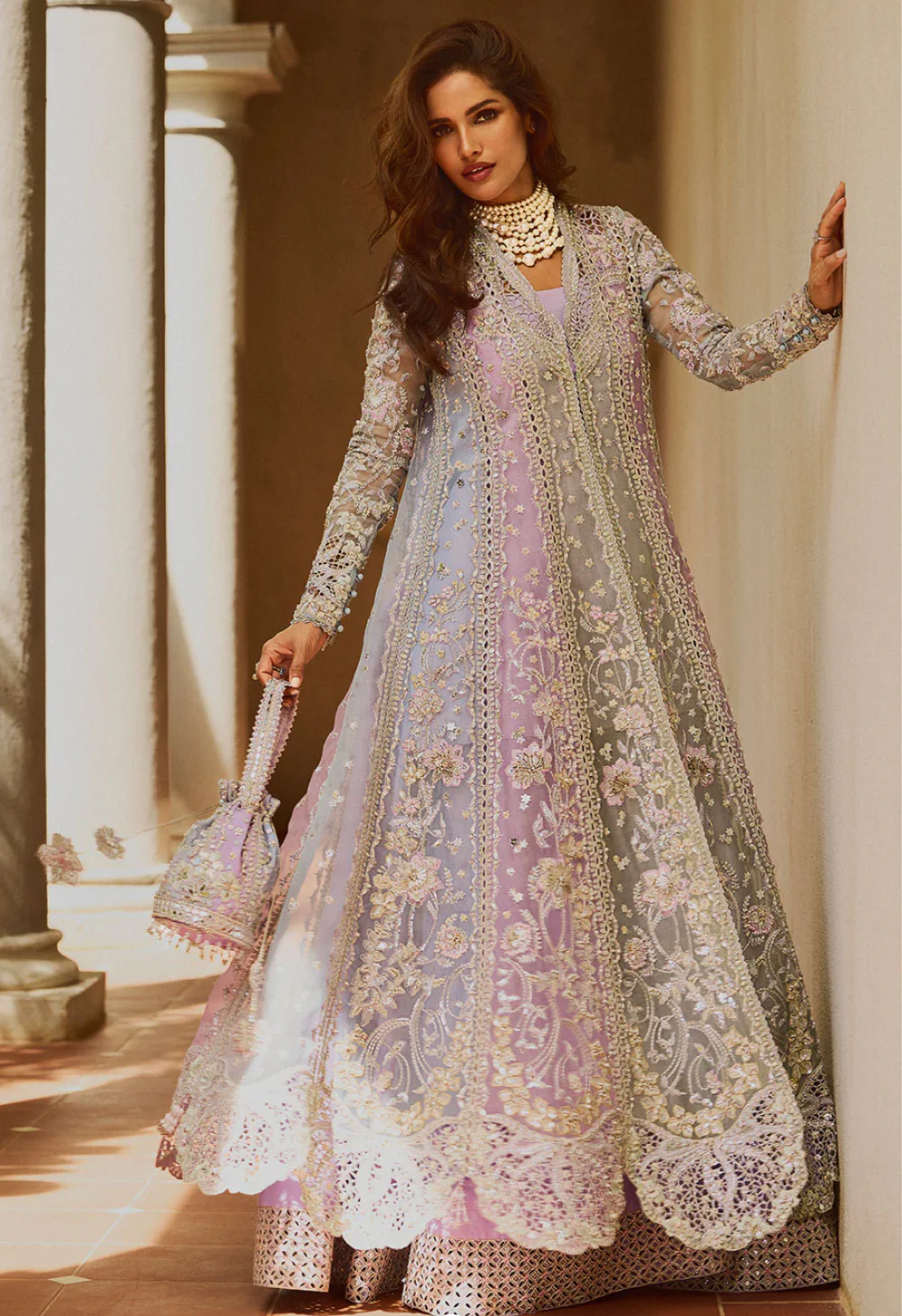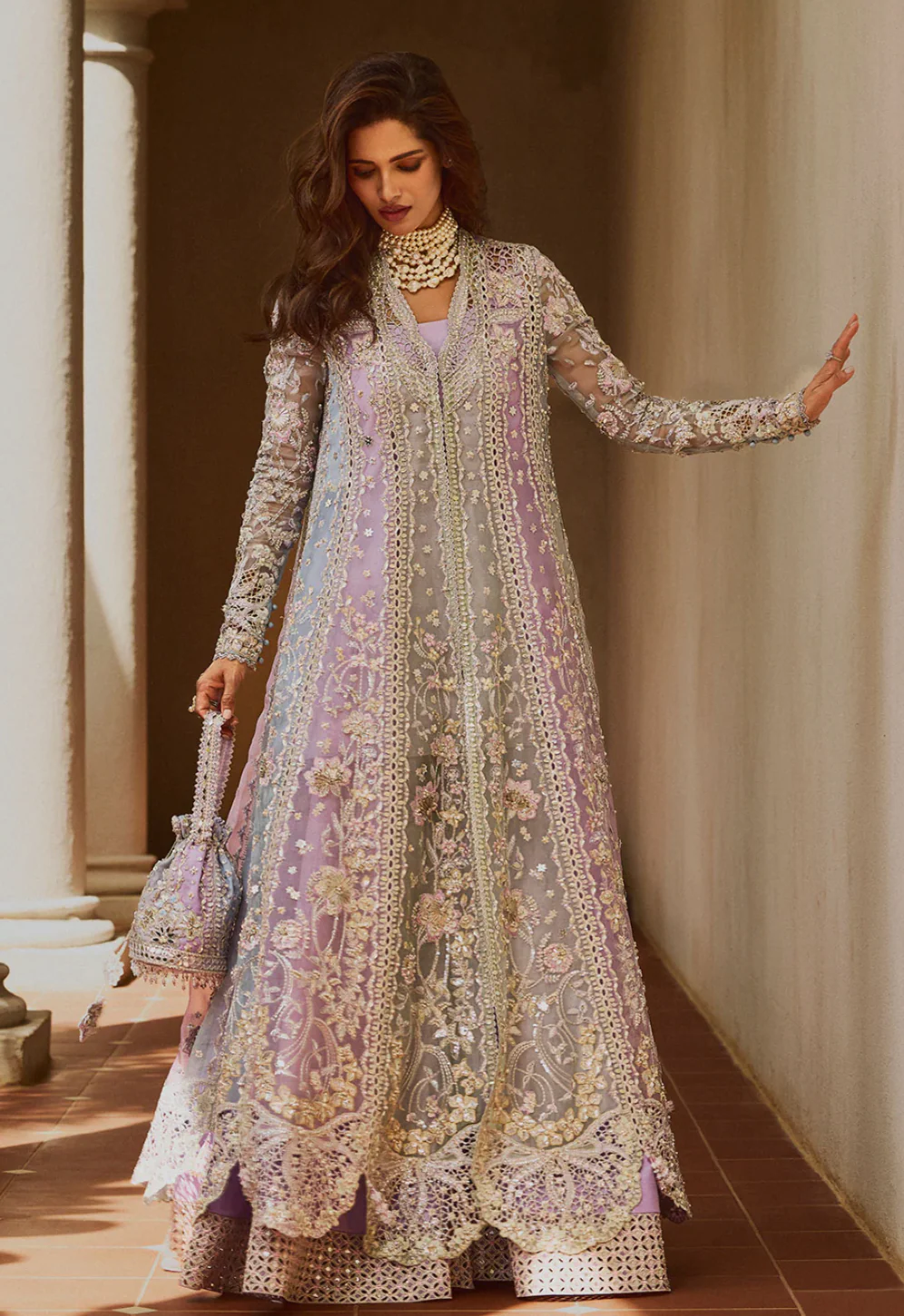 • Embroidered Hand Embellished Front Right+Left Panels B (Lilac Organza) – 2 Pc
